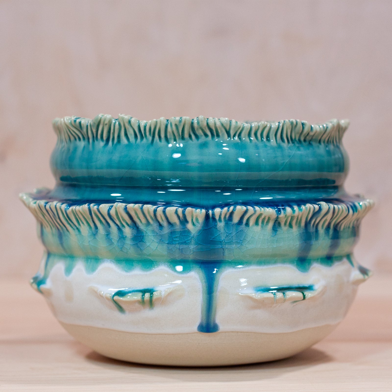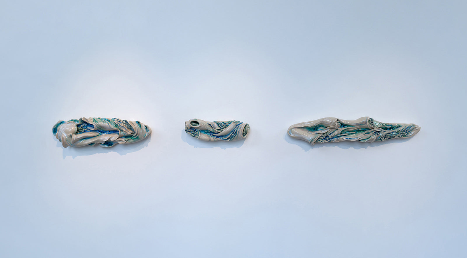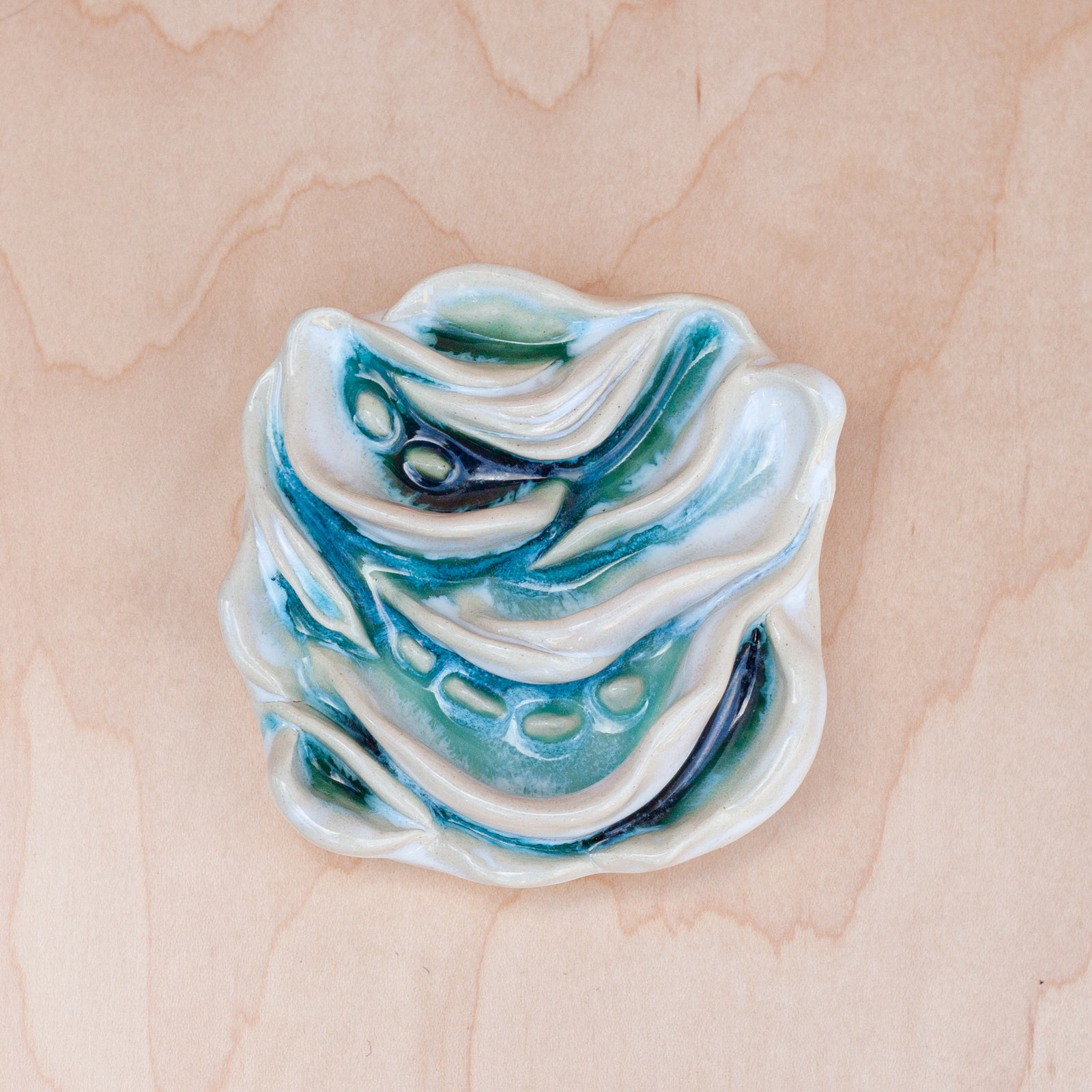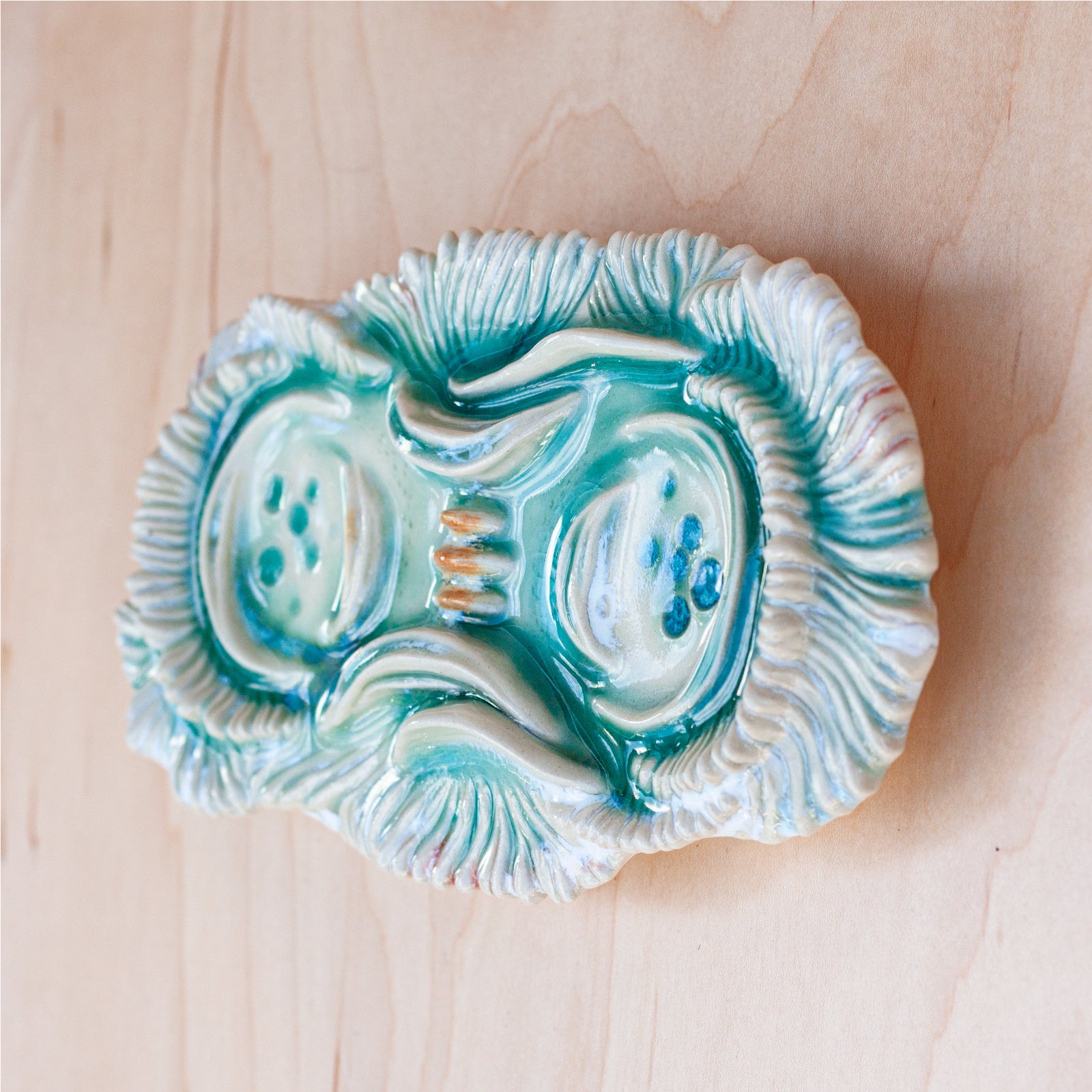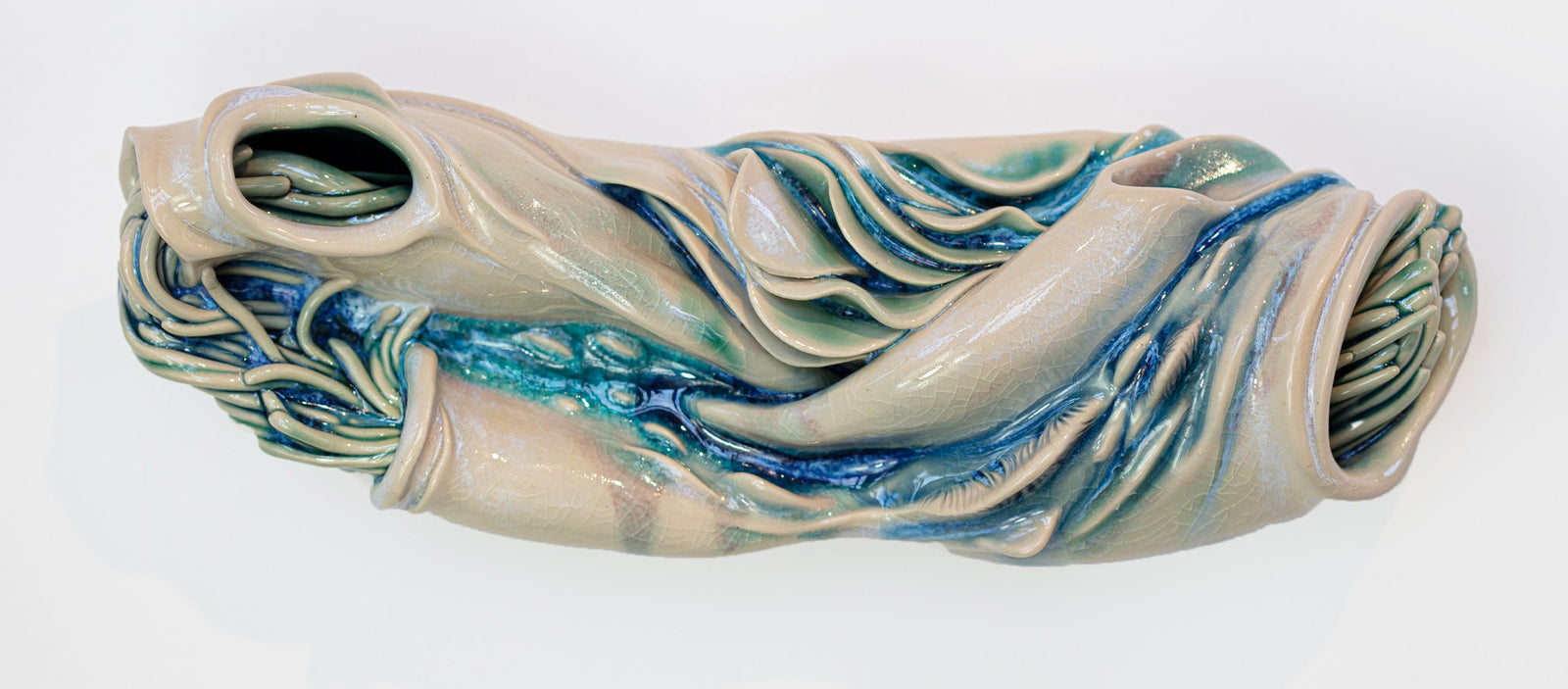 "independently overlapping, tenderly I test your permeability", stoneware and glaze, 2020.