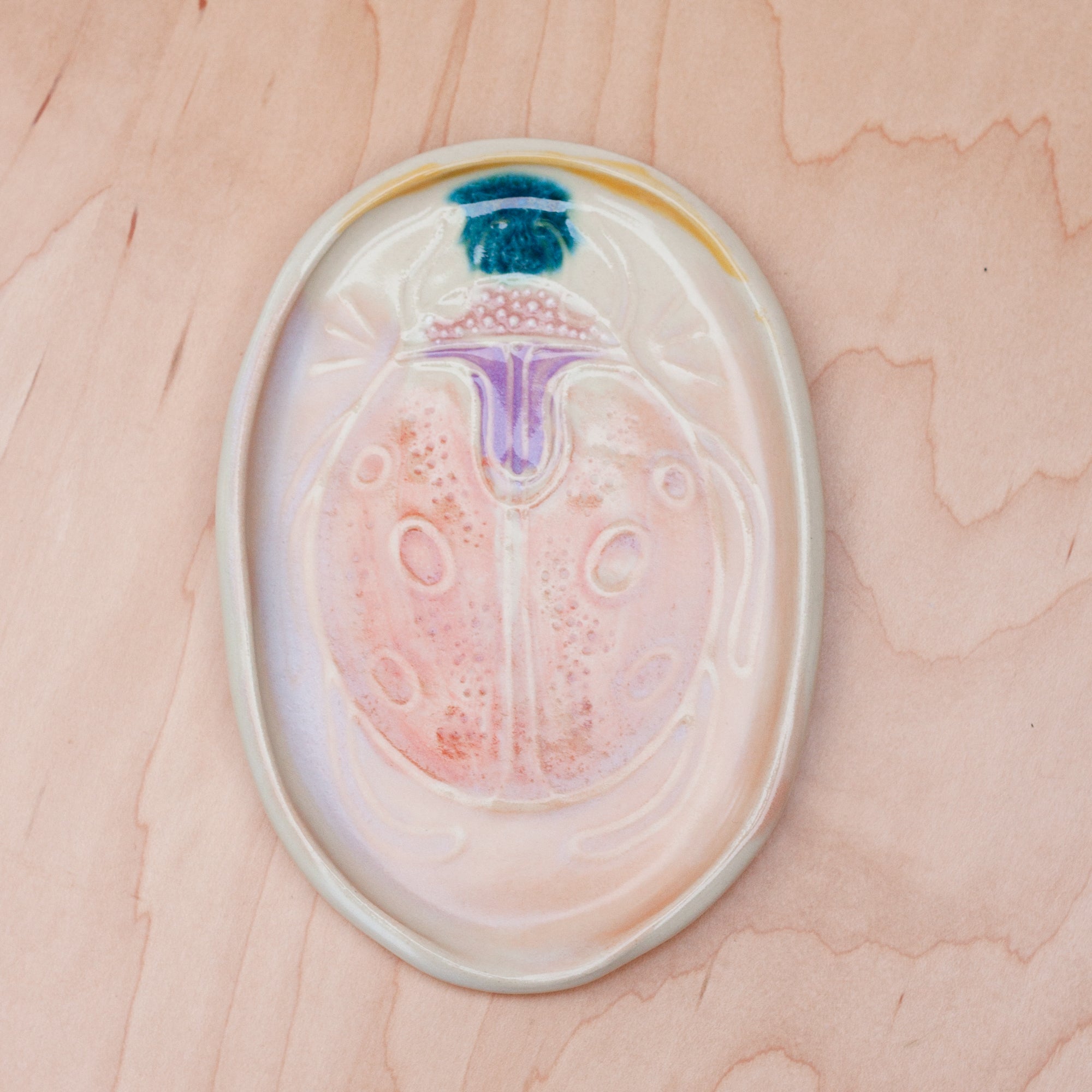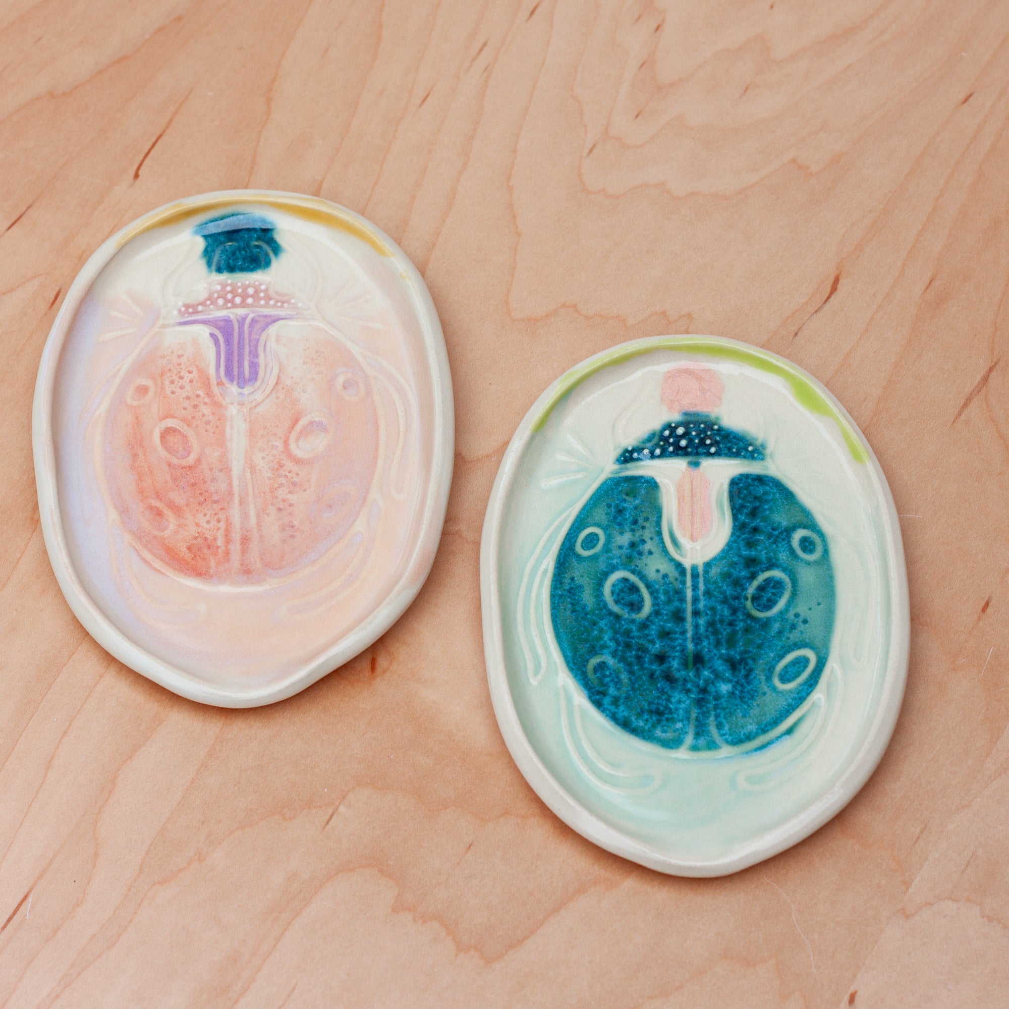 This lady bug spoon rest is hand painted in a watercolor like style in my favorite warm tones. Little details are both impressed and slip trailed. Perfect to catch your spoon drips!