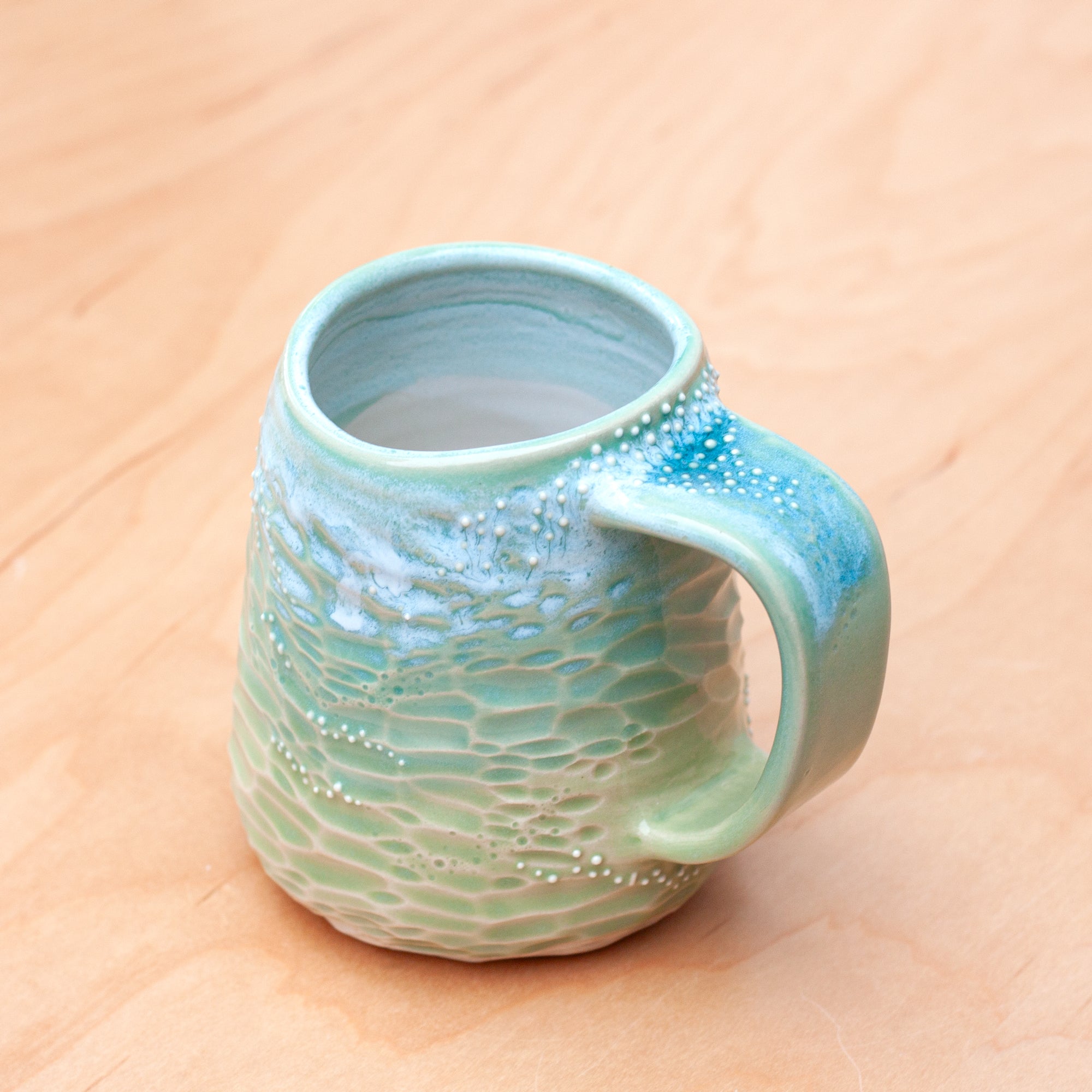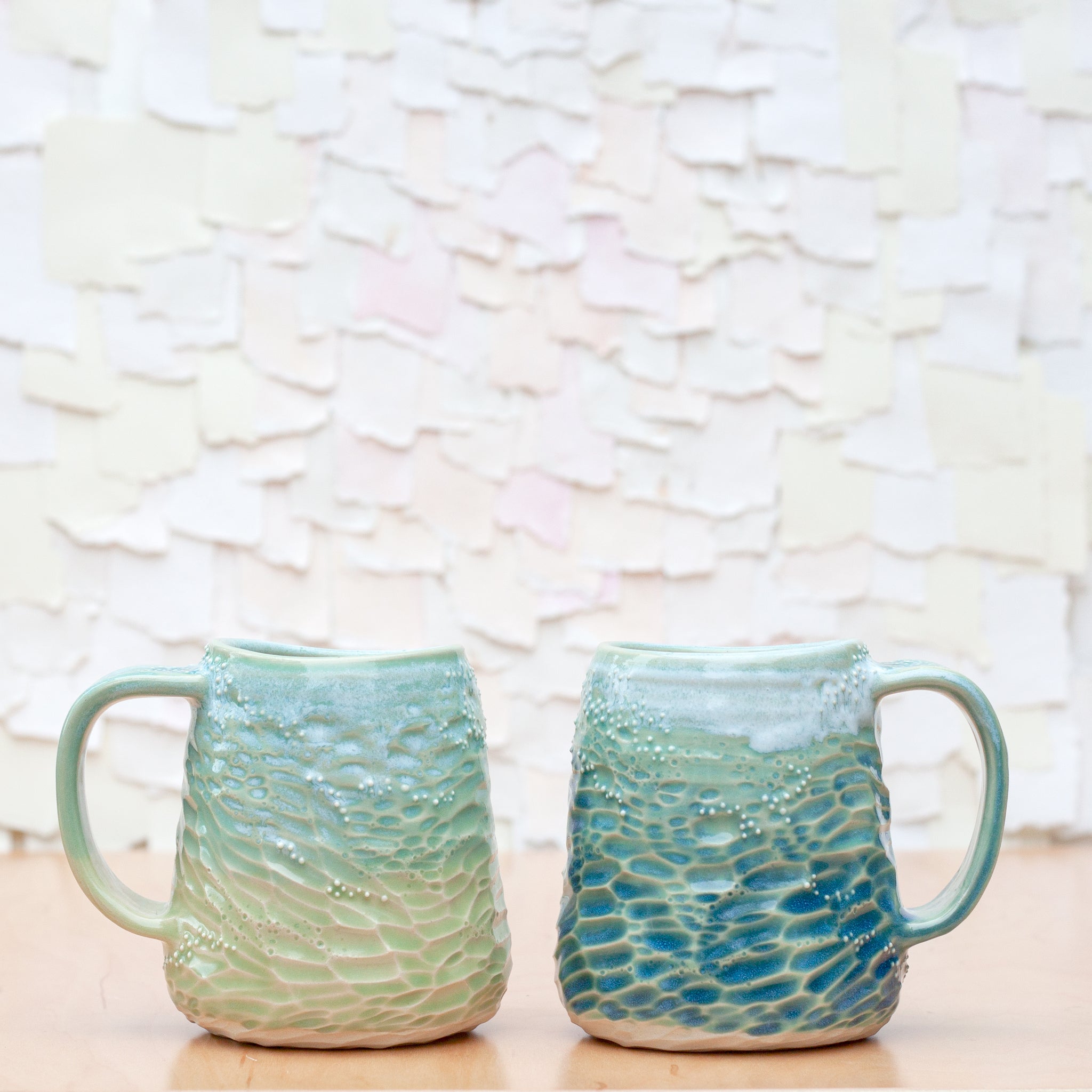 You've been asking and here they are! A stein of a mug made for huge cups of coffee, tea, or a full can of your favorite brew! Big enough to hold a full 16oz can. The simple pattern on this mug is inspired from reoccurring instances of natural movement found along the trail- like the flow of the stream, a school of fish, or leaves blowing in the wind.
