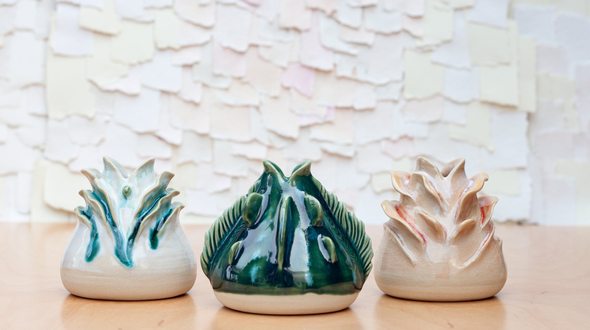 Little bud vases perfect for a single bud. This piece has hand sculpted detail flowing around. Beautiful with a flower or on its own!