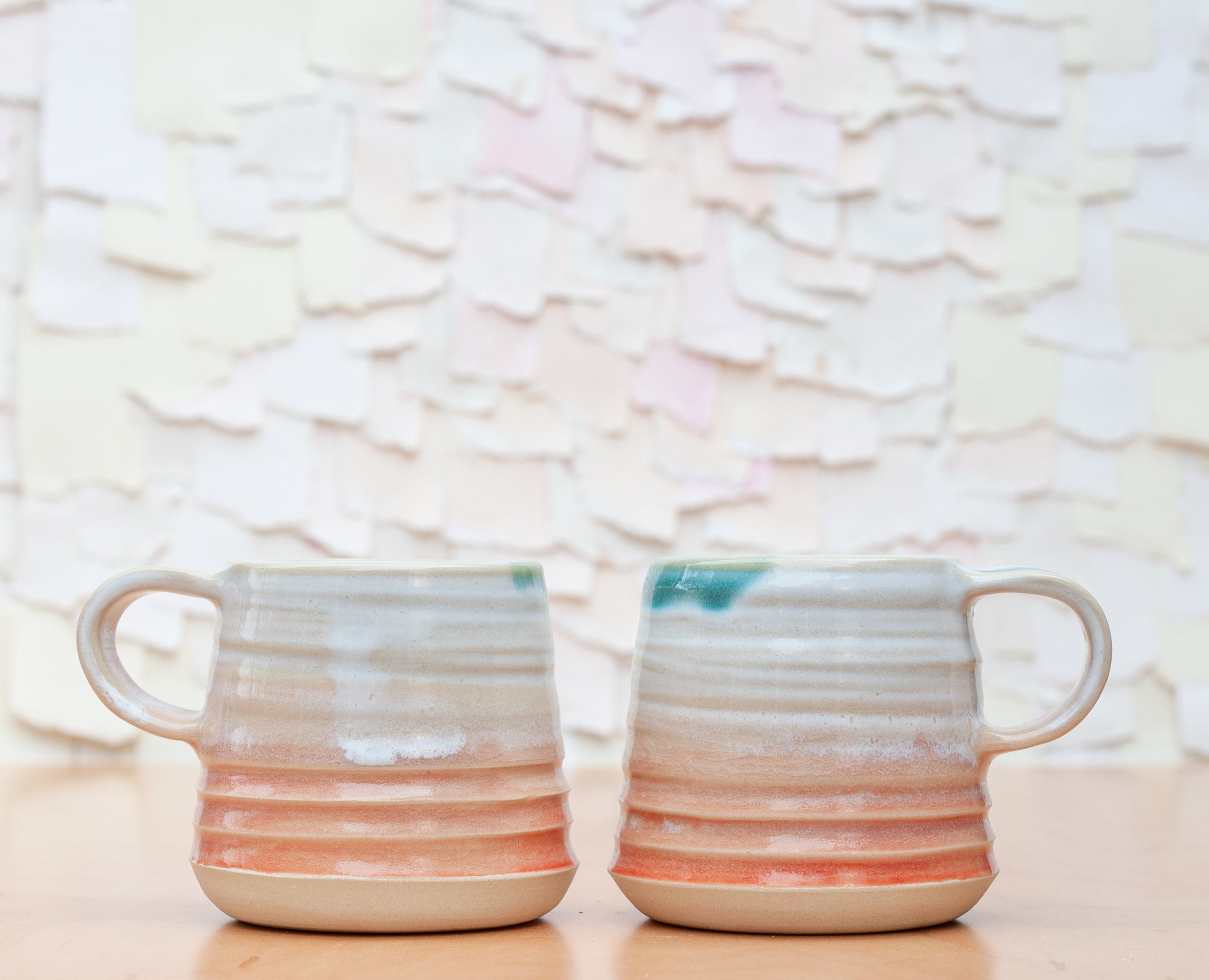 A simple daily mug with a delicate pattern like the rings of Saturn or ripples in the sand. The perfect size for two shots of espresso and some foam or a spot of coffee!